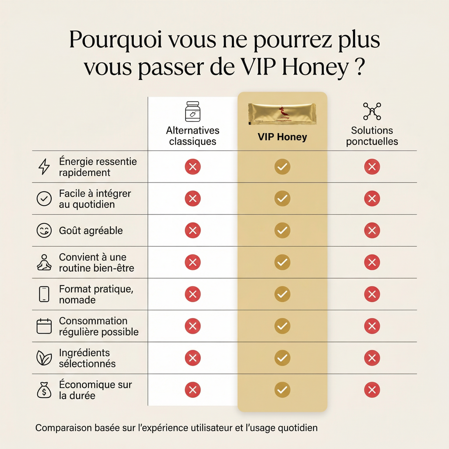 Oui. VIP Honey est élaboré à partir de miel sélectionné et de plantes traditionnelles, sans artifices inutiles.